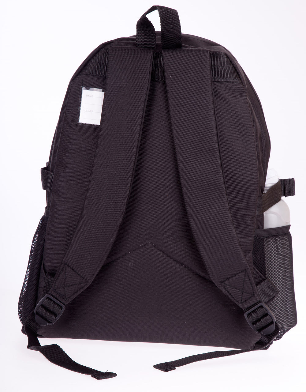 The practical senior school bag designed to carry everything a child needs for school. Waterproof material, this will keep things inside dry from the great british showers! With a large front organiser pocket (featuring key holder, pen organiser) and special rubber feet to protect the bottom. It also has a side mesh pockets for extra water bottles and extra storage. Will fit a full A4 folder.