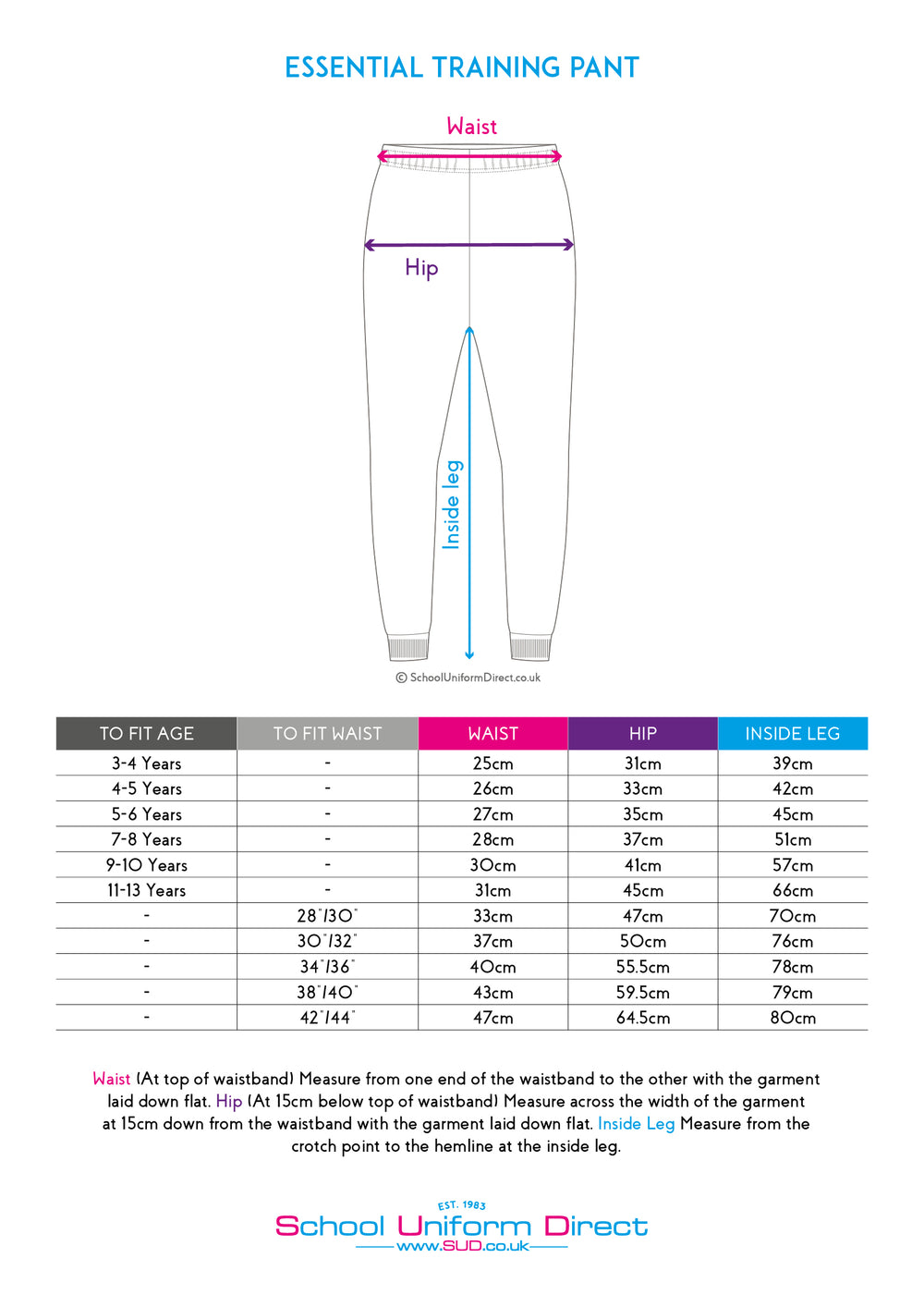 New Item for 2022 Optional Item Slim fit leg style Elasticated cuffed hem for a snug, comfortable fit for junior sizes only Side pockets Elasticated waistband with internal drawcord Silver reflective tape details
