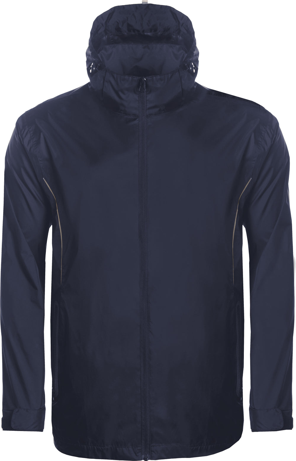This lightweight, breathable jacket is essential for outdoor training, complete with sealed shoulder seams and a removable hood. 100% Polyester with Micro fibre PU coating Silver reflective tape trimming Reverse side full zip jacket with zipped welt pockets Adjustable and detachable hood with Velcro wrist adjusters