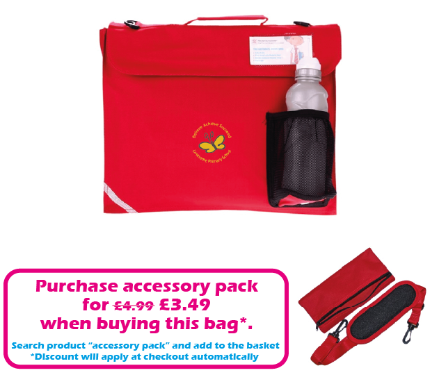 Compulsory The Ultimate Book Bag is here! featuring a unique patent design. A bottle Holder on the front (to avoid the spills in the bag!) and a rear Clear pocket for those important letters! Made from 420D Nylon, this product is water proof for the inside contents! Also Available is the Accessory Pack (purchased separately) -For £4.99 includes a shoulder strap, shoulder pad and matching pencil case. When purchased with the Ultimate Book Bag the accessory Pack is at a reduced price of £3.49.
