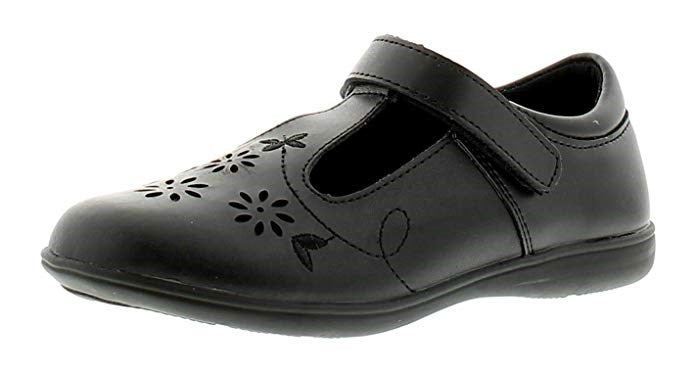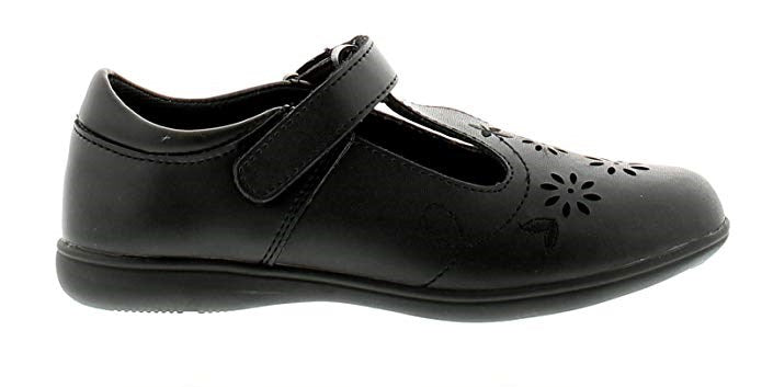 Older Girls Coated Leather T-Bar School Shoe. Girls Buckle My Shoe Shoes. Black. Outer Material: Other Leather Inner Material: Textile Sole: Other materials Closure: Hook & Loop Shoe Width: Regular