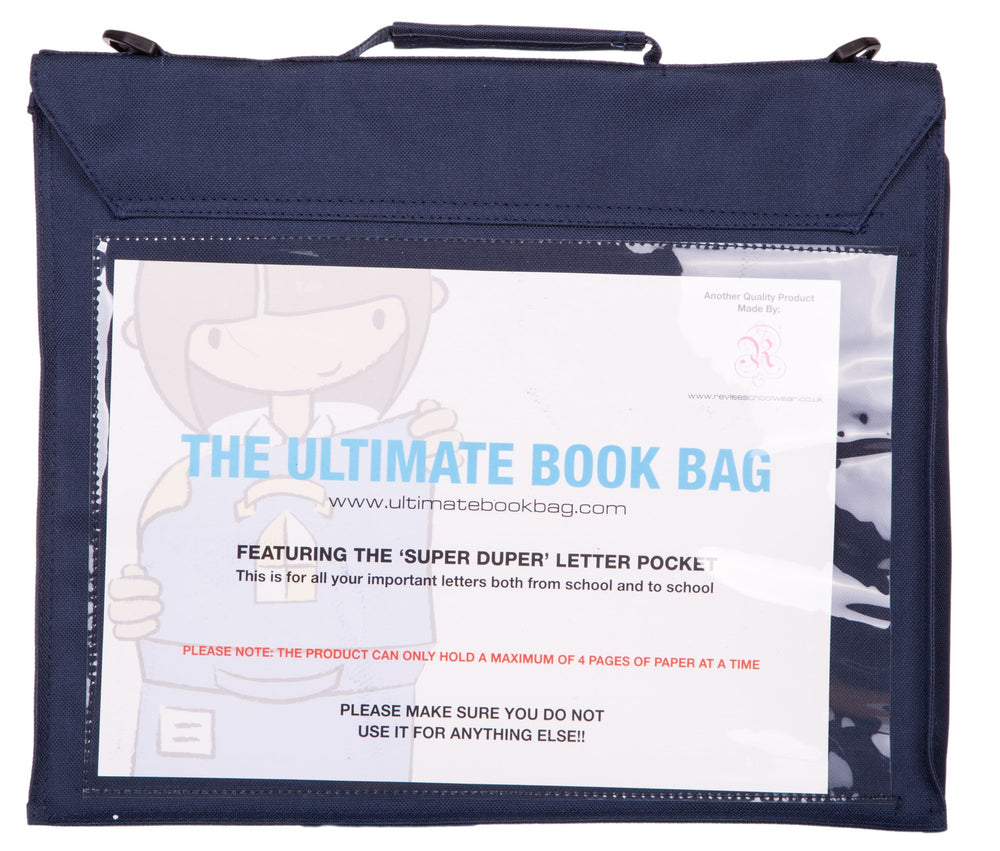 The Ultimate Book Bag is here! featuring a unique patent design. A bottle Holder on the front (to avoid the spills in the bag!) A rear Clear pocket for those important letters! Made from 420D Nylon, this product is waterproof for the inside contents! Also Available is the Accessory Pack (purchased separately) - For £4.99 includes a shoulder strap, shoulder pad and matching pencil case. When purchased with the Ultimate Book Bag the accessory Pack is at a reduced price of £3.49.