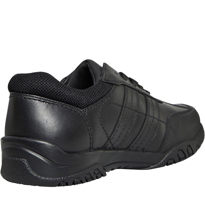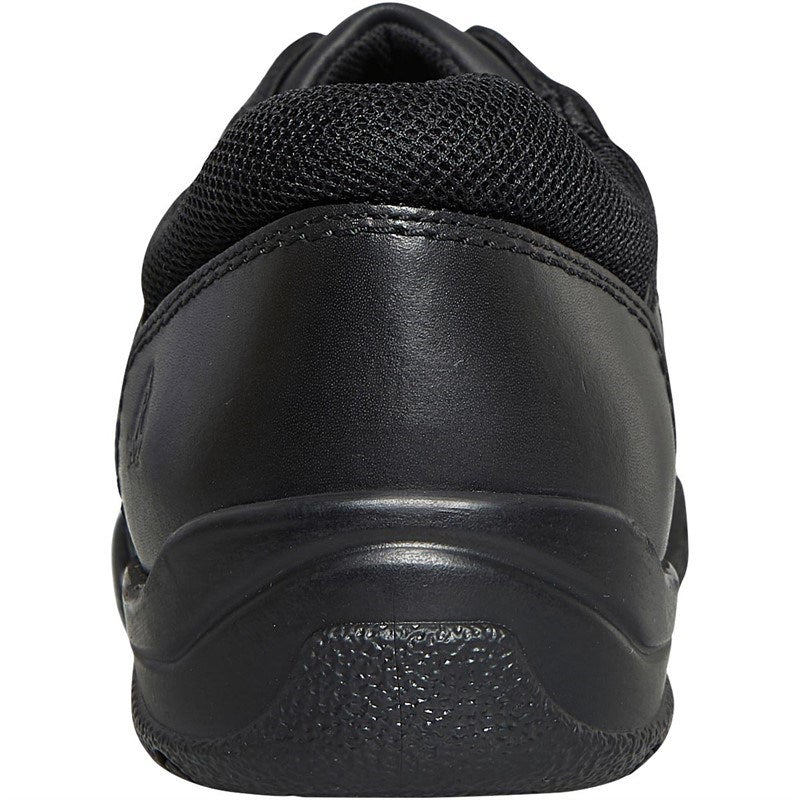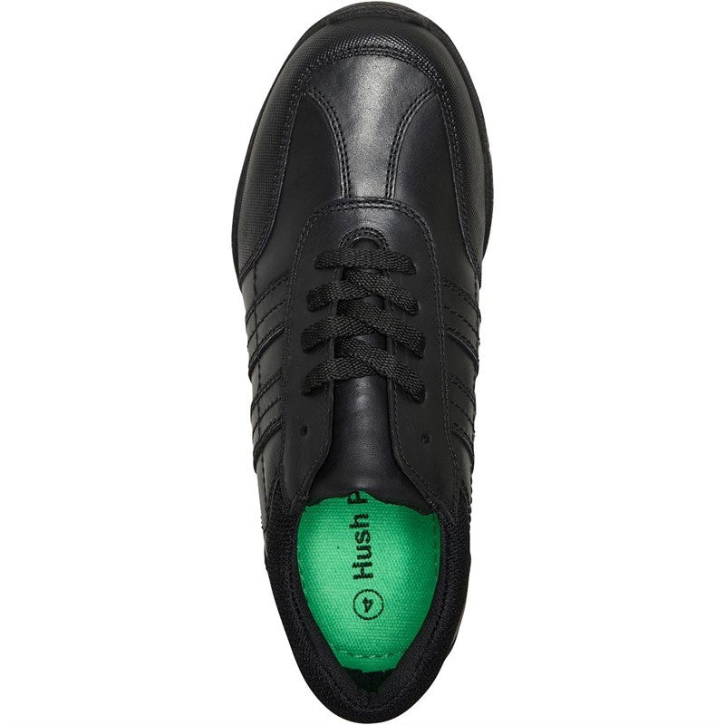 PROMOTIONS: Spend over £50 on anything - Get 10% Off Shoes & Accessories Spend over £70 on anything - Get 20% Off Shoes & Accessories RRP: £45.00 Hush Puppies unique fit left fit right foot bed fitting system Footbeds can be tailored to fit each individual shoe Full leather upper This smart black leather boy's shoe is complete with a padded ankle collar for extra comfort as well as removable insoles for a tailored fit. The toe is strengthened to ensure the shoe is hard-wearing and robust.