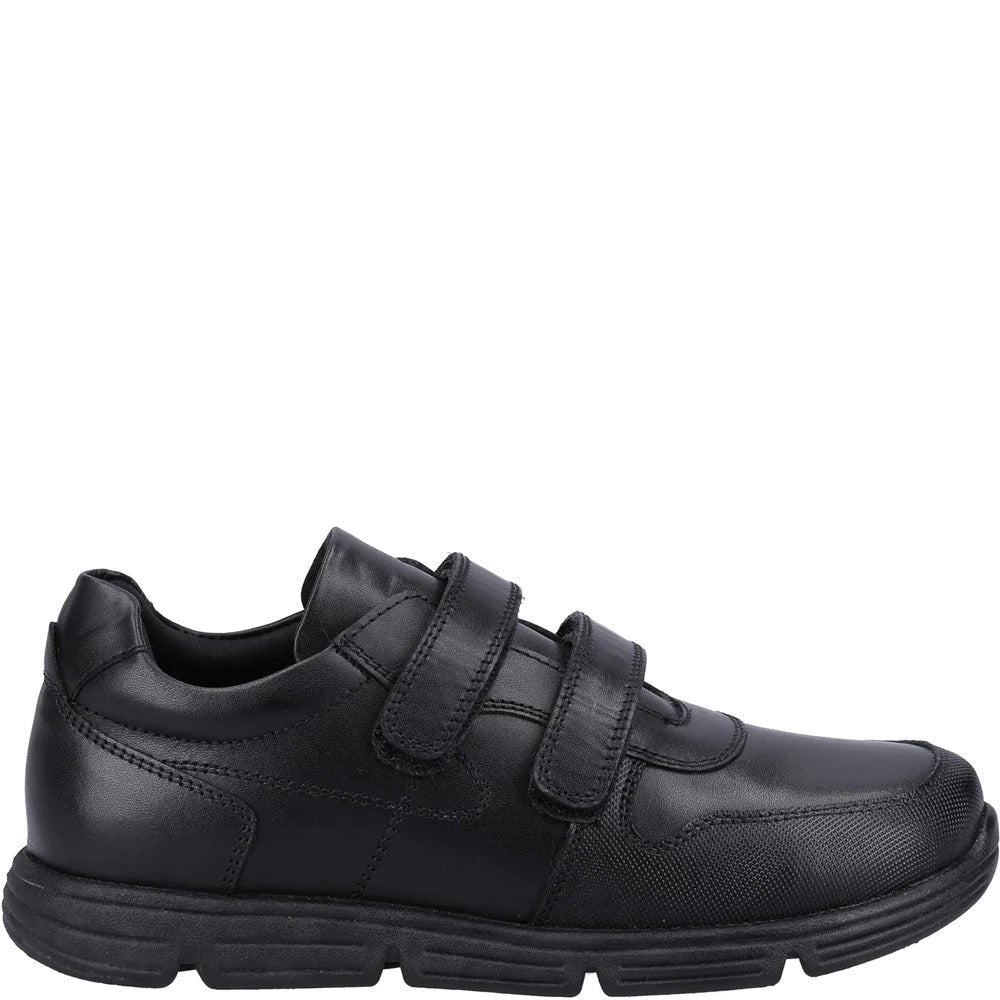 The Lucas black school shoe for boys boasts a subtle padded collar for extra comfort enabling feet to feel secure throughout the school day. Its double touch fastening straps allow for a secure fit whilst its lightweight outsole enable feet to be comfortable. Removeable Bounce™ Footbed provides energy rebound with every step and retains its cushioning for all day comfort Double Touch Fastening Style with Textured Toe Guard Leather Upper Subtle Padded Collar for Extra Comfort Breathable Textile Lining Flexible and Lightweight Outsole
