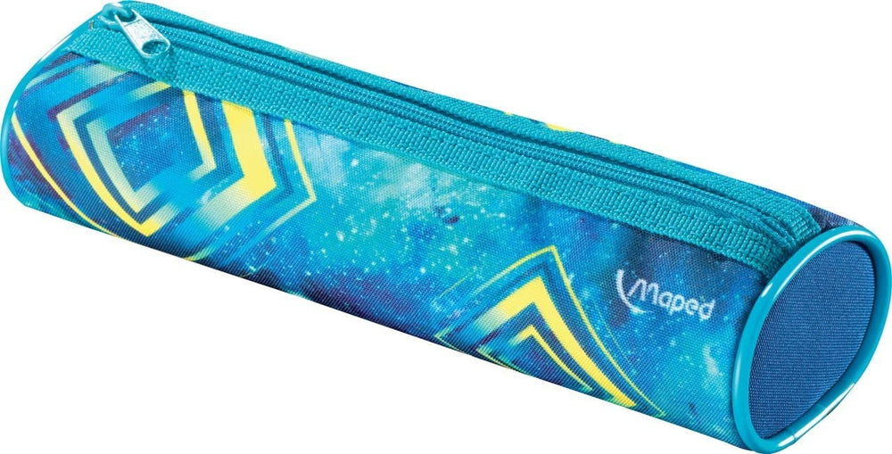 Geometric pattern pencil case with galaxy cosmic background Metal zip Pink or Blue. Random colour selection only. Colour cannot be specified 45 x 60 x 205 millimetres