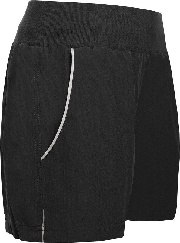 These easy fit training shorts allow for effortless movement whist providing complete support around the middle. 90% Polyester, 10% Spandex Feminine cut with comfortable elasticated cotton rib waistband and drawstring Silver reflective tape details Comfortable elasticated waistband with drawstring
