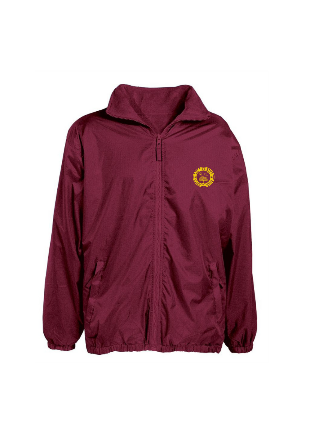 Full length zip Concealed pack away hood Safety reflective bands - junior sizes only Zip pockets Crease resistant Easy access for embroidery Elasticated cuffs