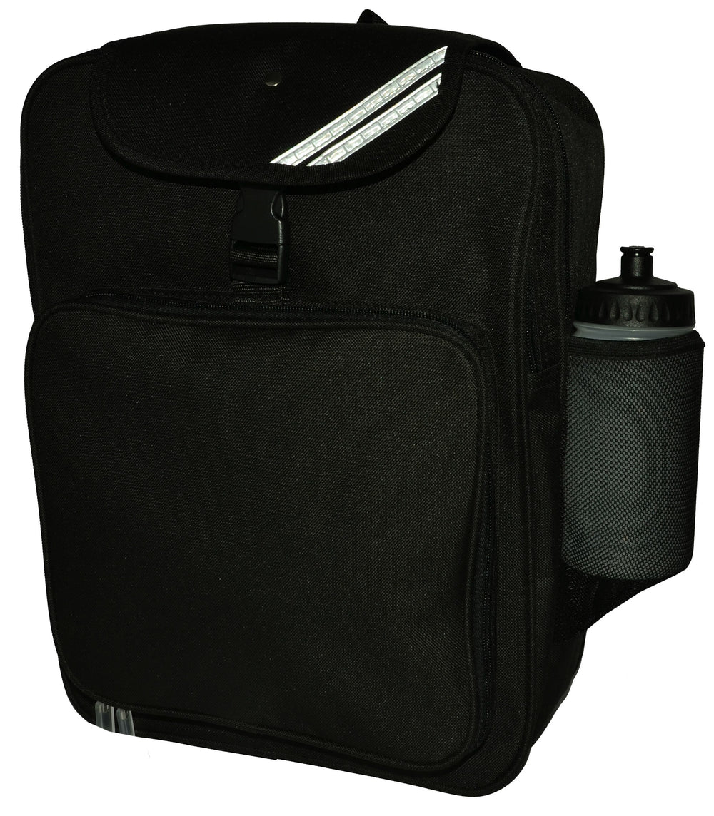 The practical junior school bag designed to carry everything a child needs for school Front pocket containing pen holder and detachable pencil case. Shoulder straps have Blazer buddy lining to avoid pilling of garments. Special rubber feet protectors give added protection.