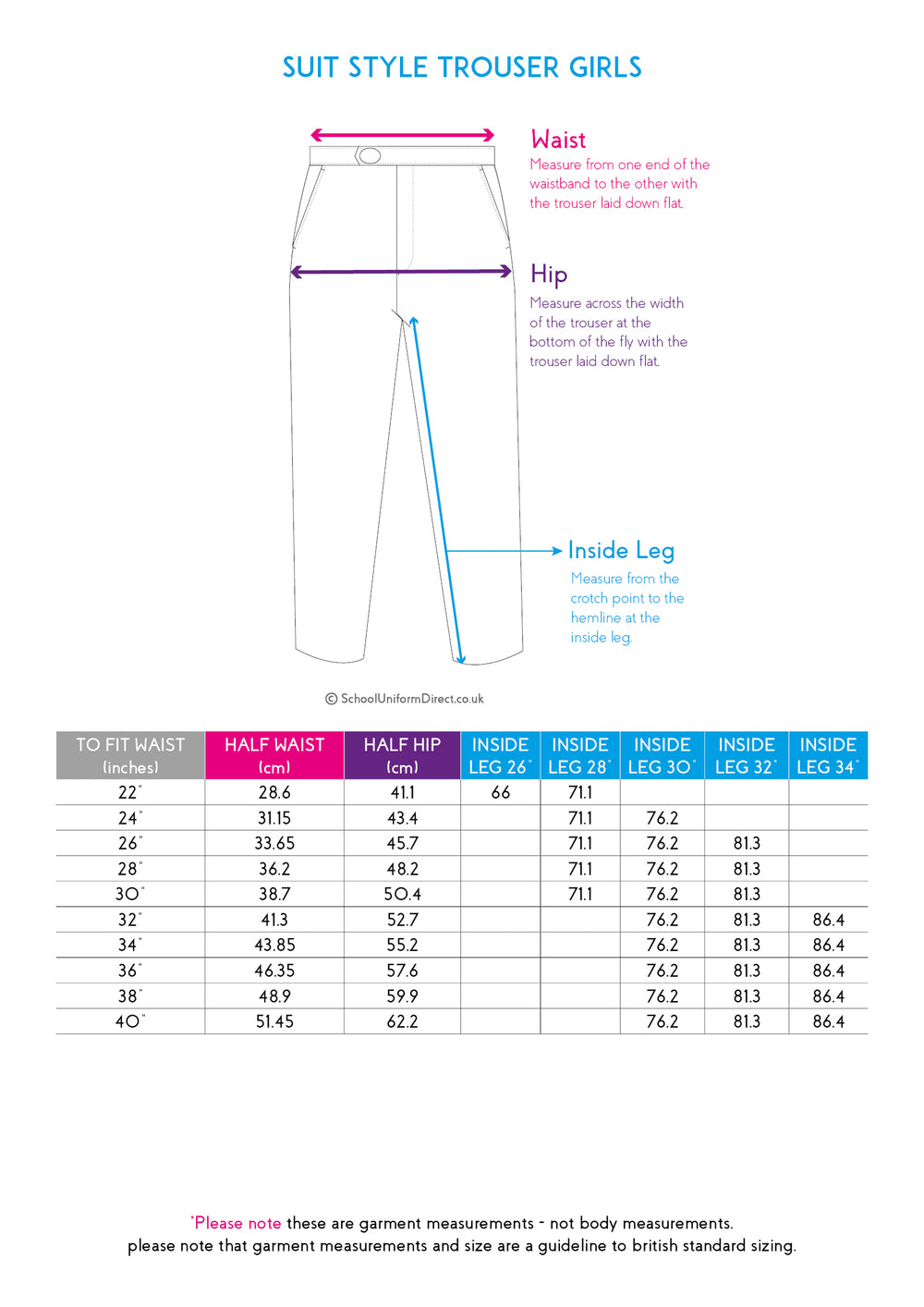 Senior Girls Slim Fit Trouser 63.5% Polyester/ 34.5% Viscose/ 2% Elastane Front pocket Contrast internal binding Slim leg