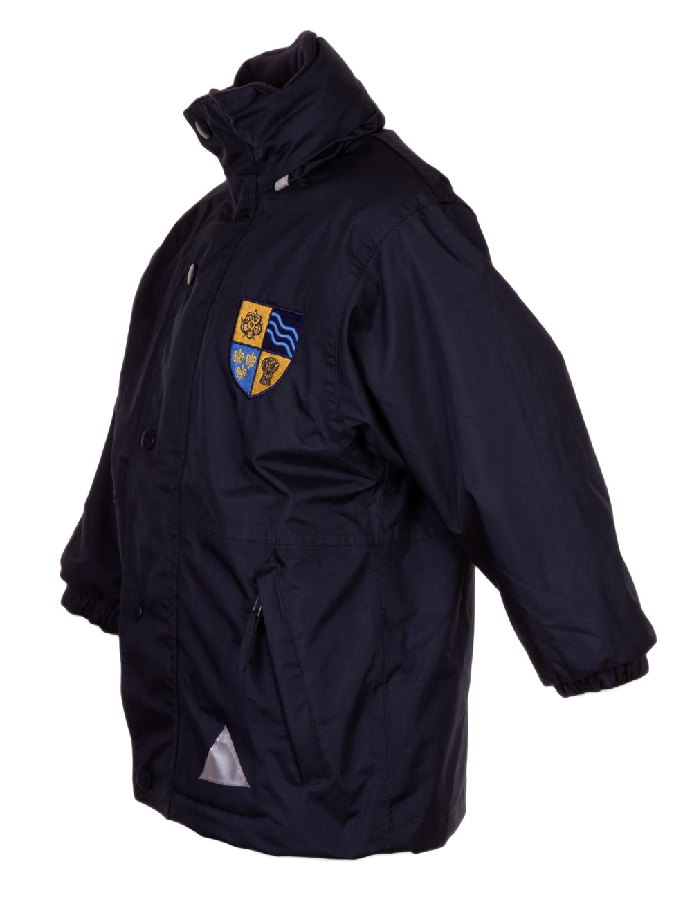 These reversible fleece jackets have become increasingly popular by school, parents and pupils. Features Include: -Double stitched taped seams -Concealed hood in collar with tear release fastening -Reversible full front zip fastening -Elasticated cuffs -Stud closing storm flap -Storm Stuff reflective patch (upper back) -Pocket label with space for name and class -Triangles incorporating 3M™ Scotchlite™ reflective materials -Contains recycled material -Anti pill finish fleece